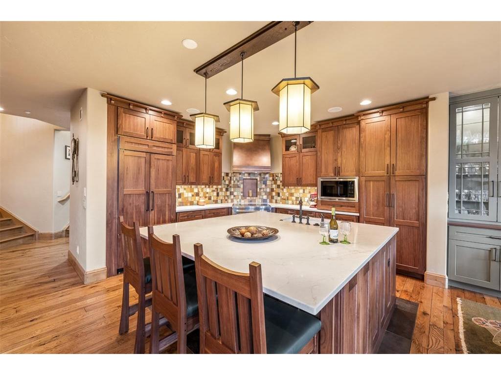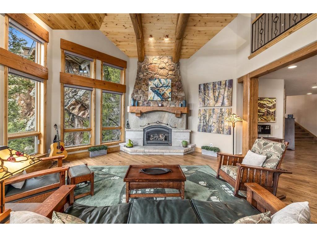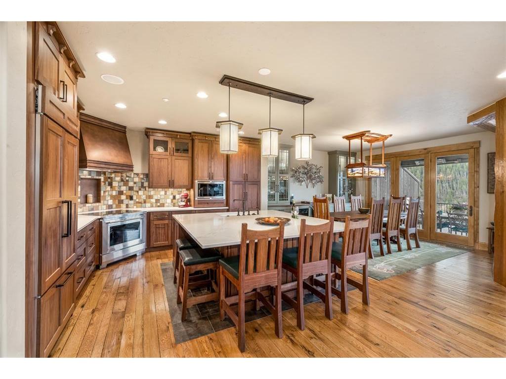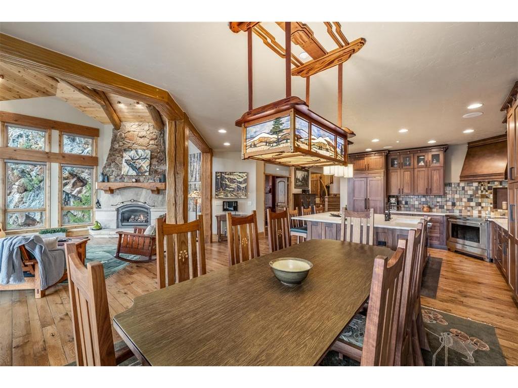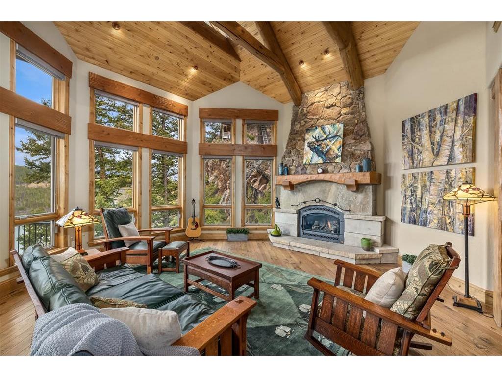 Welcome to this beautifully updated home that seamlessly blends contemporary finishes with classic comfort. Spectacular ridge setting overlooking Lake Dillon with south-westerly mountain views. The moment you step inside, you’ll be greeted by sun-filled living spaces, expansive log beams, wide-plank hardwood flooring and elegant details throughout. The completely updated open-concept kitchen is a chef’s dream—featuring a large island with sleek quartz countertops, stainless steel appliances and custom cabinetry. Adjacent dining and living areas offer the perfect layout for entertaining or cozy nights in by the fireplace. Picture windows flood the space with natural light. The home offers three generously sized bedrooms plus den with built in murphy bed. The primary suite is a true sanctuary, boasting an ACT oxygen system, a spa-inspired en-suite bathroom and custom walk-in closet. Enjoy gorgeous lake views from the alcove seating area. Outdoors, enjoy a peaceful oasis with views of La