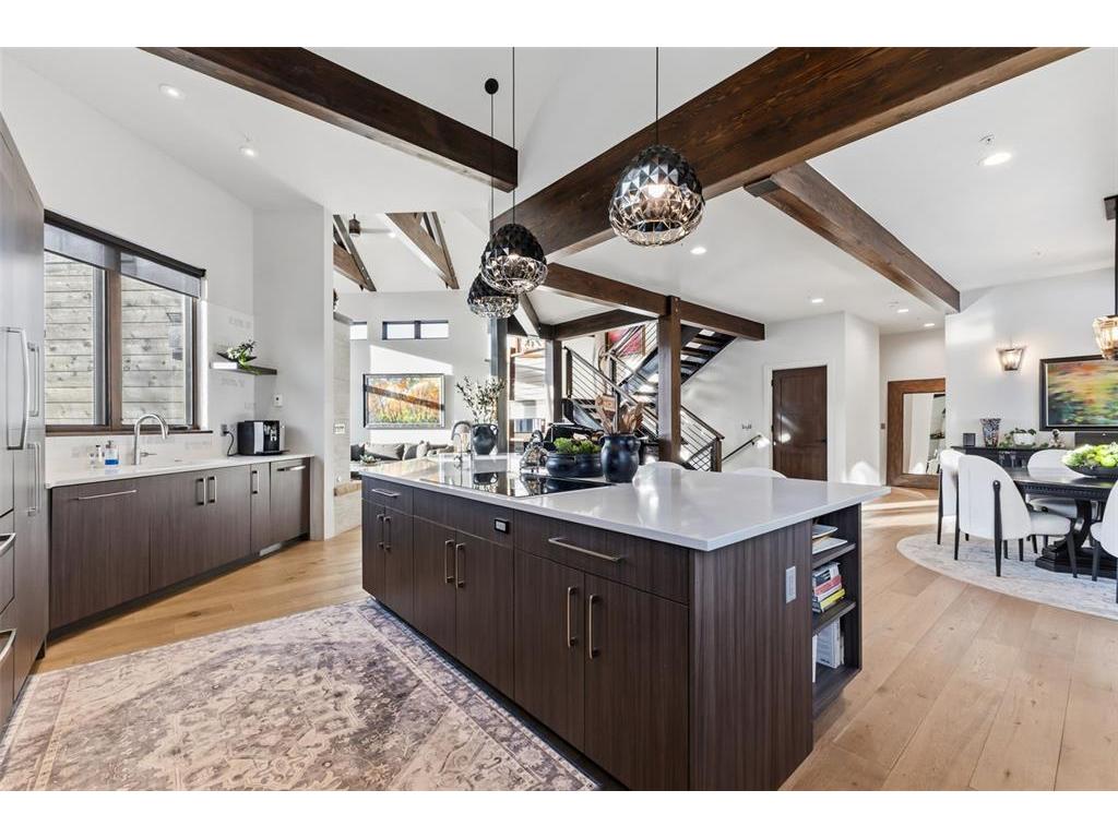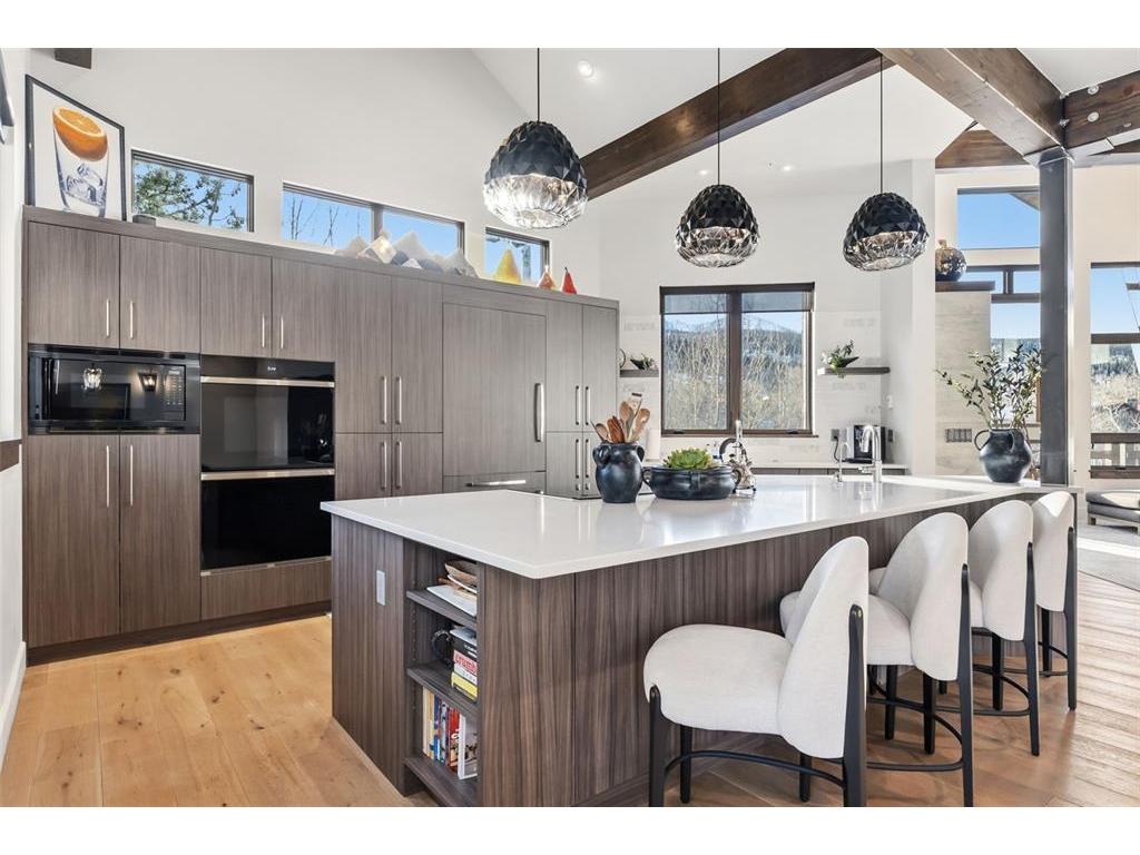Thornview Retreat is a striking mountain contemporary masterpiece where inspired design meets breathtaking natural beauty. This 4 bedroom, 4.5 bath home is thoughtfully crafted to maximize natural light and capture extraordinary mountain views from nearly every room. Rich wood finishes are perfectly balanced with steel accents, custom ironwork and elegant masonry, creating a warm yet refined atmosphere throughout. High-end finishes, furnishings and exceptional craftsmanship elevate every space. Set on a private 0.39-acre lot within an exclusive golf course community, the home offers rare seclusion while remaining conveniently close to town, world-class skiing and year-round recreation. The open floor plan and vaulted ceilings enhance the sense of space, while seamless indoor/outdoor living invites you to relax and entertain. Enjoy evenings under the stars from the private hot tub or gather with guests in the extensive outdoor living areas. Additional highlights include a wet bar, fle
