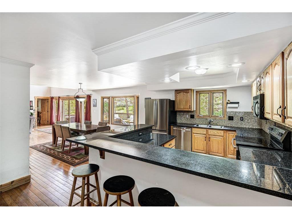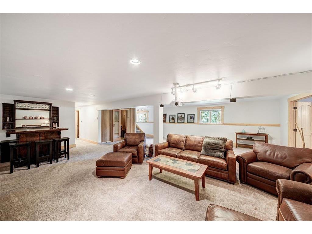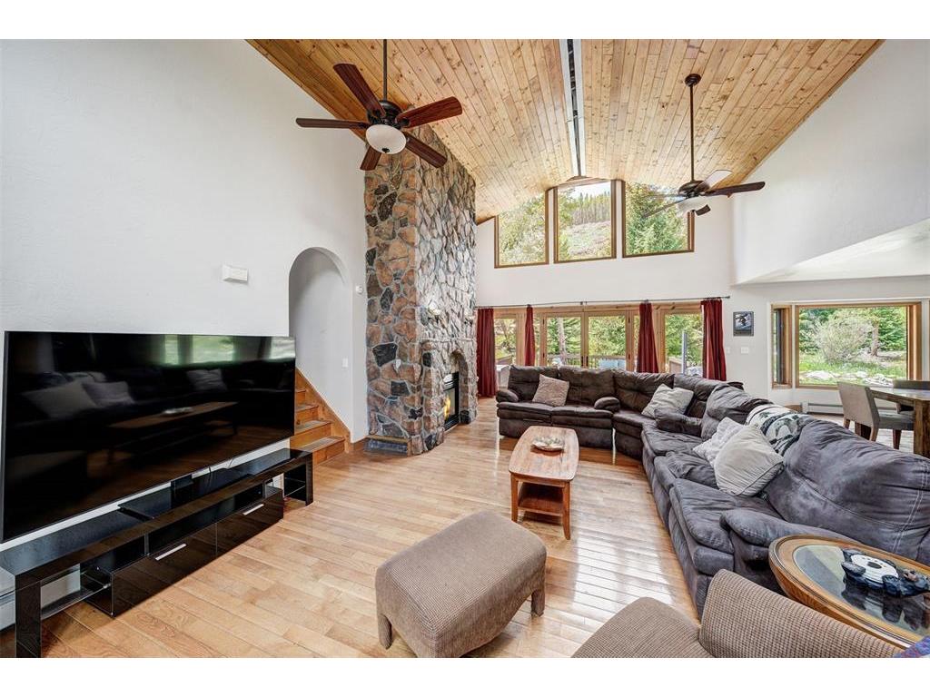 As the lowest price per square foot single family home in Blue River, this is an excellent opportunity to own a mountain home full of possibilities and with no HOA! Short term rentals are allowed, with annual projections are over $150k. This will make a fantastic vacation home, full time residence, or investment property. Just 5 minutes to Breck, this spacious 6 bedroom, 5 full bathroom home offers 5,348 square feet of living space, designed for both privacy and entertaining. The interior features hardwood floors, vaulted ceilings and an open living room with floor to ceiling window that flood the space with natural light. The primary bedroom is on the main floor, facing the mountain, with a 5 piece ensuite bath. A separate north and south wing each house 2 bedrooms and 1 full bath. Downstairs, the expansive finished basement has a family room, a den, sauna, full bathroom, and room for more: maybe an additional bedroom, a home theater, wine cellar, home gym or music studio? Not only do